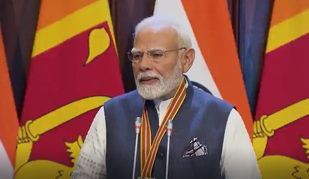 पीएम मोदी ने राष्ट्रपति दिसानायके द्वारा ‘श्रीलंका मित्र विभूषण’ से सम्मानित किए जाने को “गौरव की बात” बताते हुए एक्स पर लिखा, “यह सम्मान केवल मेरा सम्मान नहीं, बल्कि यह 140 करोड़ भारतीयों का सम्मान है। यह भारत और श्रीलंका के लोगों के बीच ऐतिहासिक संबंधों और गहरी मित्रता का सम्मान है। भारत ने ‘सबका साथ, सबका विकास’ के विजन को अपनाया है। हम अपने साझेदार देशों की प्राथमिकताओं को भी महत्व देते हैं।”