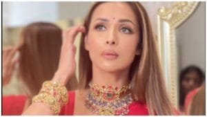 इस लुक को सेलिब्रिटी स्टाइलिस्ट आस्था शर्मा ने स्टाइल किया। मलाइका ने अपने लुक को गोल्ड ज्वेलरी के साथ कंप्लीट किया, जिसमें एक खूबसूरत कुंदन चोकर, नाजुक कटवर्क और मल्टीकलर एम्बेलिशमेंट थे। इसके अलावा, उन्होंने हाथों में मैचिंग चूड़ियां भी पहनी, जिससे उनके लुक में शाही अंदाज जुड़ गया।