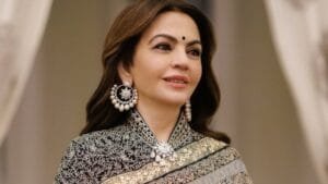 Nita ने अपने एक्सेसरीज को बहुत सादा रखा और डायमंड इयररिंग्स और फ्लोरल डिज़ाइन वाली डायमंड ब्रेसेलट पहना। उनके बालों को सौम्य वेव्स में स्टाइल किया गया था और मिनिमल मेकअप के साथ उन्होंने काले बिंदी, गुलाबी लिपस्टिक और हल्की ब्लश लगाई, जो उनके लुक को एक भारतीय शाही एहसास दे रही थी।