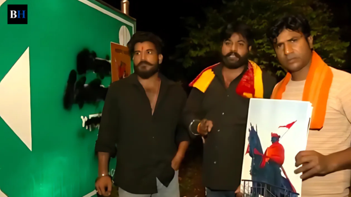 तीन लोगों ने गुरुवार को दिल्ली में’ अकबर रोड’ के साइनबोर्ड को खराब कर दिया, उनका दावा है कि कश्मीरी गेट आईएसबीटी पर महाराणा प्रताप की मूर्ति को नुकसान पहुंचाया गया है।