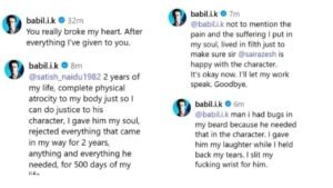 Sai Rajesh ने सोशल मीडिया पर लंबा पोस्ट लिखकर Babil की टीम पर सवाल उठाए। उन्होंने कहा, “मैंने Babil के साथ दो साल काम किया। उसके किरदार को असली दिखाने के लिए खुद को तकलीफ दी, गंदगी में रहा, दाढ़ी में कीड़े तक झेले, और हाथ काटने जैसे सीन किए। फिर भी मेरे नाम का जिक्र तक नहीं किया गया?”
